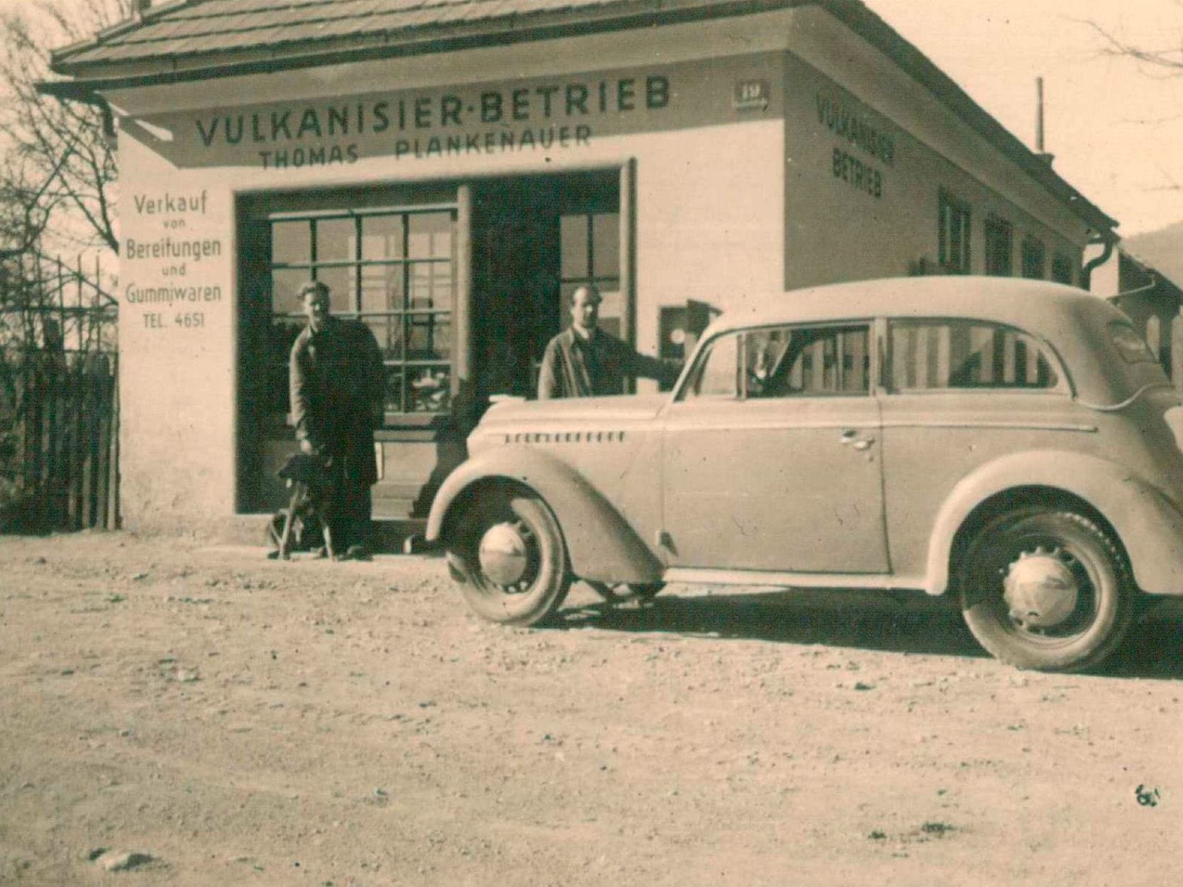 Erster Betrieb in St. Veit/Glan Thomas Plankenauer jun. verkauft sein Motorrad und investiert in seine Zukunft. Am Schillerplatz entsteht das erste eigene Geschäft. Die Motorisierung nimmt Fahrt auf und Plankenauer liefert die Reifen dazu.