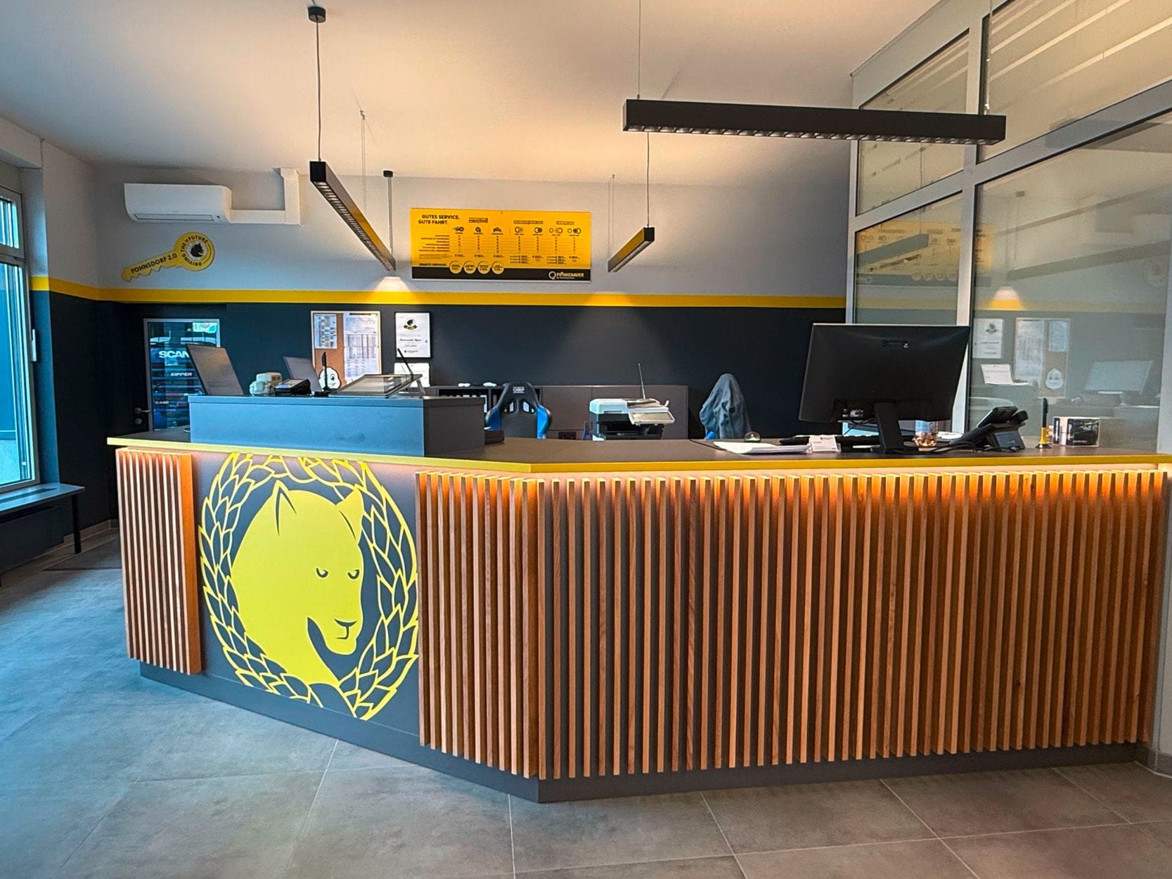 Die Filiale wurde vergrößert und modernisiert, um mehr Platz für ein perfektes Reifenservice und zufriedene Kunden zu schaffen. Mit einer riesigen Lkw-Montagehalle wird der Standort perfekt an die Zielgruppe angepasst.
